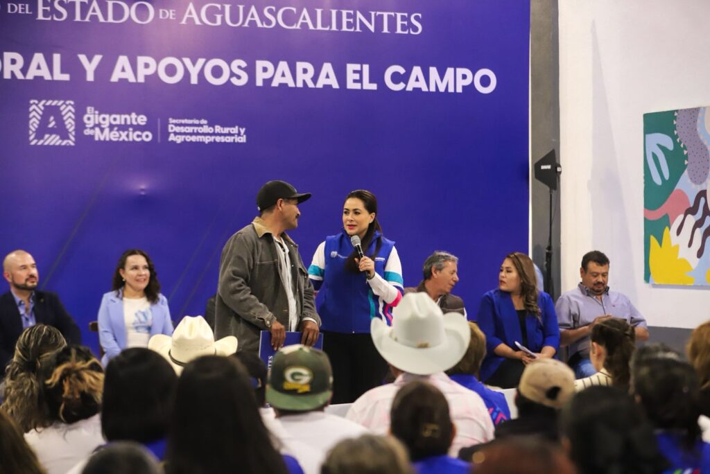 La gobernadora de Aguascalientes, Tere Jiménez, realizó la entrega de apoyos para el campo y de empleo temporal en beneficio de familias productoras de comunidades rurales del municipio de Jesús María.