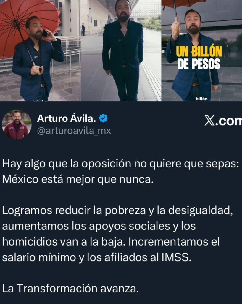 Caminando bajo la lluvia, el Morenista Arturo Ávila aseguró en un video en redes sociales que México está mejor que nunca, pues ha disminuido la pobreza y desigualdad.