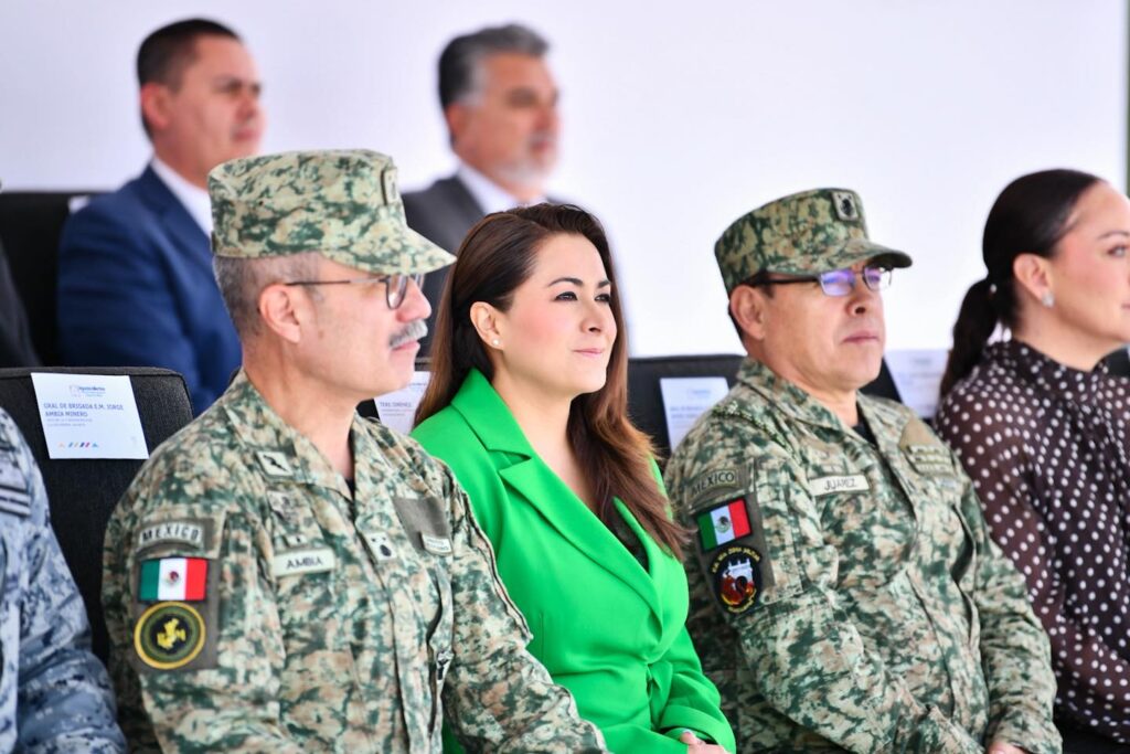 La gobernadora de Aguascalientes, Tere Jiménez, encabezó un encuentro con mandos de la V Región Militar, en el que además se entregaron reconocimientos a integrantes del Ejército mexicano, la Guardia Nacional y corporaciones de seguridad pública estatales y municipales por su destacado desempeño y su labor para mantener la paz y la tranquilidad de la población.