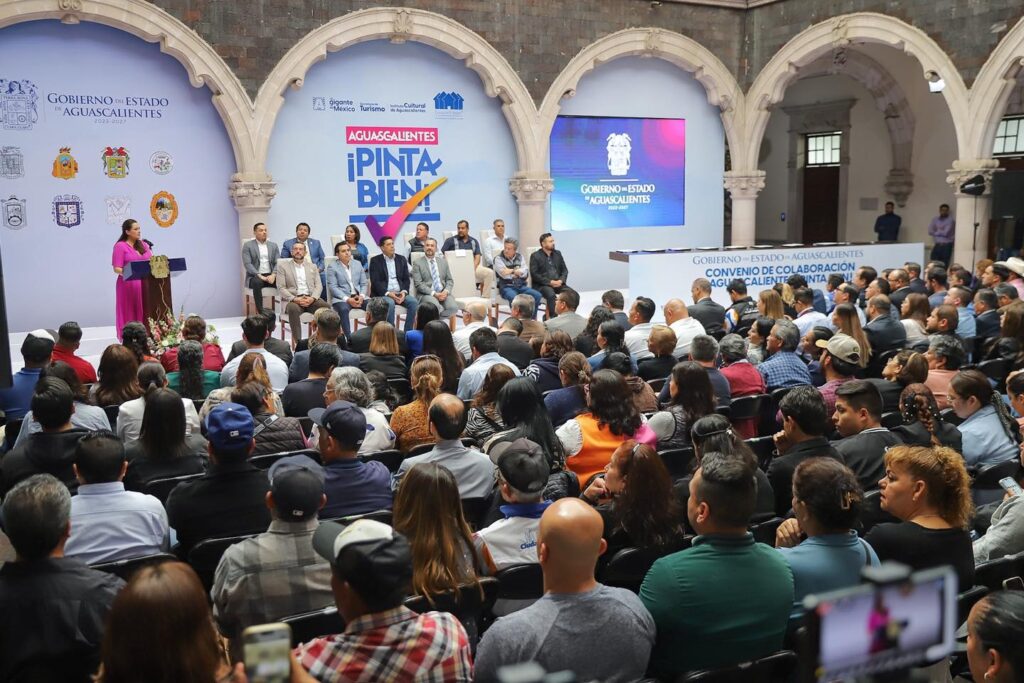 La gobernadora de Aguascalientes, Tere Jiménez, encabezó la presentación de “Aguascalientes ¡Pinta Bien!”, el programa de mejoramiento de imagen urbana más grande en la historia del estado, mediante el cual se pintarán 10 mil fachadas en distintos municipios, con el objetivo de embellecer las ciudades y dignificar el entorno de miles de familias.